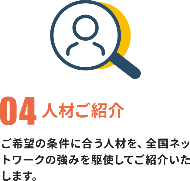 近くの拠点からすぐに伺います - 必要なエリアに人材を派遣するために、サービス拠点は全国に構えています。また従業員のための寮・住まいの提供を全国で行っていますので、必要な人材を必要な地域に派遣できる仕組みが整っています。
